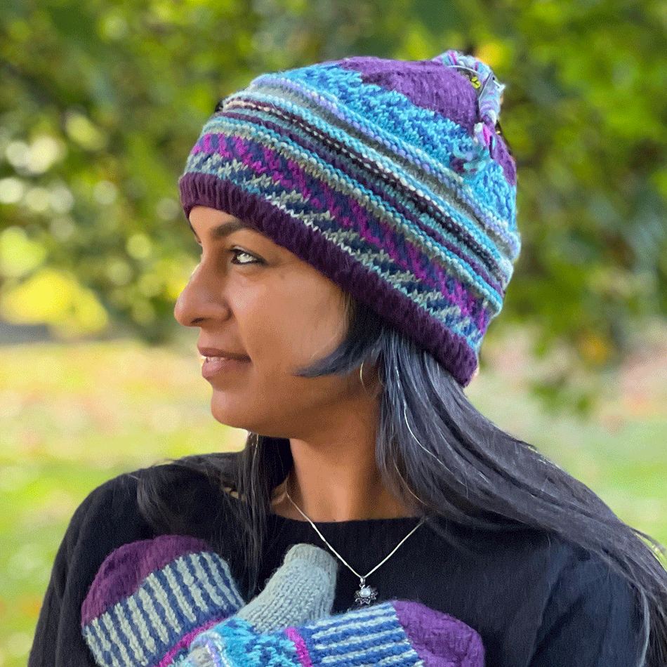 Makes a gorgeous set with our Exquisite Wool Mittens - Purple Multicolor, Nepal.