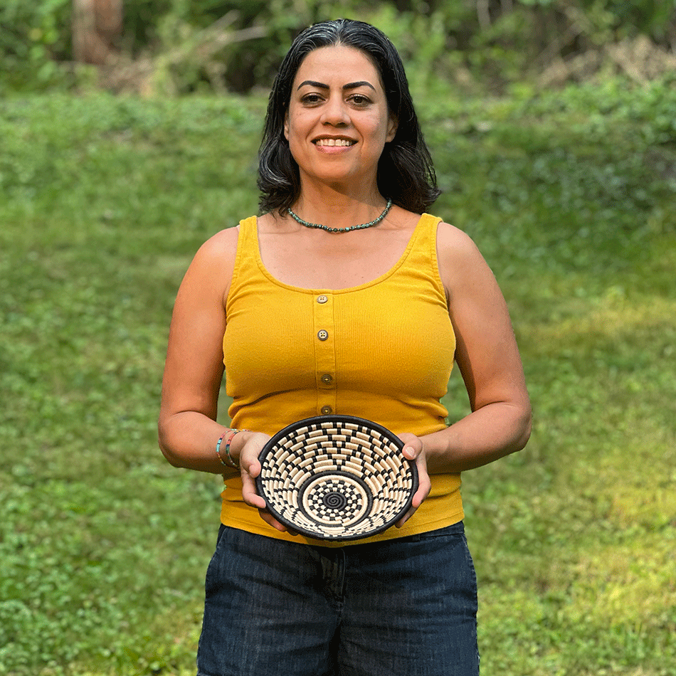 This basket is handwoven in a fair trade women's cooperative in Rwanda. In addition to receiving fair wages, the artisans are provided with skills training, market access, a collaborative work environment, and a path for economic independence. Modern designs pair with traditional techniques to create baskets that appeal to Western markets. The women have seen their lives greatly improve through steady, well-paid jobs and access to further education.