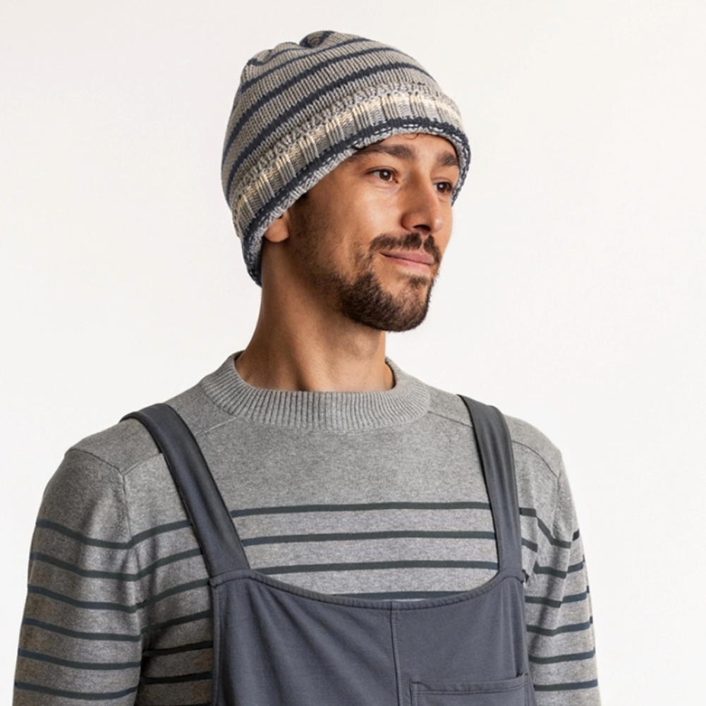 Organic Cotton Chunky Beanie - Grey Stripe, India