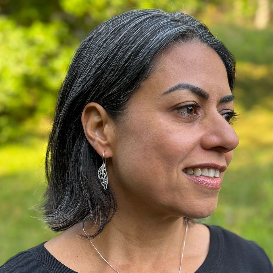 These exquisite sterling silver earrings feature butterfly wings with a sparkly matte finish on one side and a shiny finish on the other. Fun and festive, these ethically handmade earrings feel good to wear.